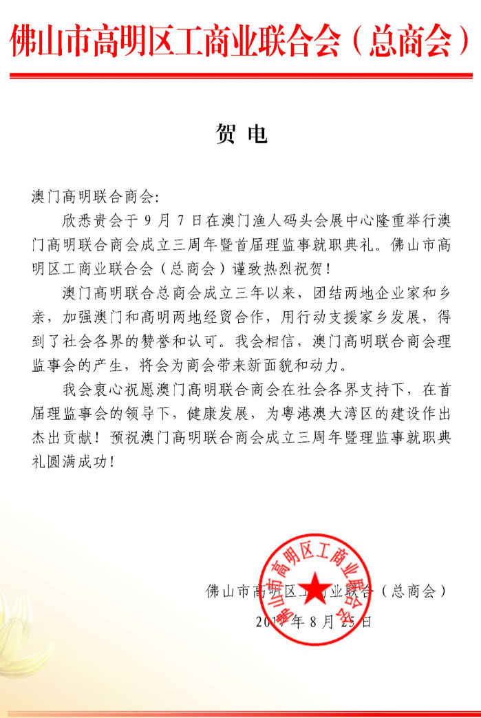 澳門高明聯合商會成立三周年暨首屆理監事就職典禮聯歡晚會