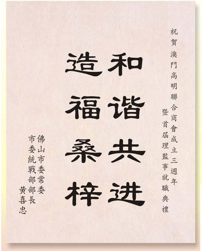 佛山市委常委黃喜忠先生題詞